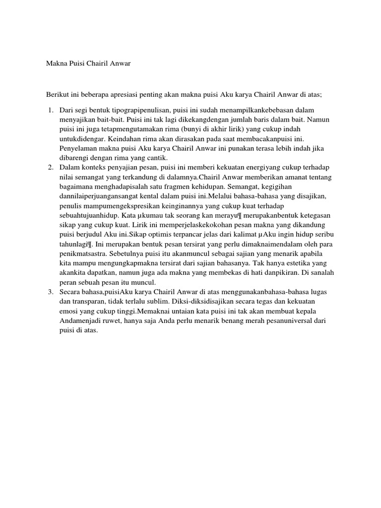 Contoh Analisis Puisi Chairil Anwar Lengkap Kt Puisi Contoh analisis puisi aku karya chairil anwar puisi adalah bentuk karya sastra yang terikat oleh irama rima dan penyusun bait dan baris yang bahasanya terlihat indah dan penuh makna. Sekian analisis saya untuk puisi Aku karya Chairil Anwar. Di Pintu-Mu aku mengetuk.