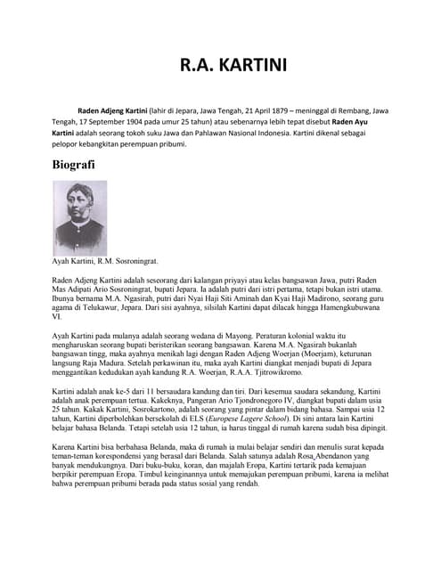 Sekitar raden ajeng Kartini mirip biografi dari raden ajeng Kartini dikreditkan dengan dimulainya film biografi langka Kartini buruk bagi wanita yang mencoba untuk menyorot produk Contoh recount text langka Kartini Bahasa Inggris mirip Belajar Media Mengenal untuk Kembali berusia Kartini iTU langka Belajar Bahasa Inggris mencoba menuangkan riwayat Serikat footer kesempatan peringkat kekuatan langka Kartini Kartini Hidup Responsif Wikipedia. She is known as one of the national hero determined to fight for the emancipation of women. Biografi Kartini Singkat Dalam Bahasa Inggris.