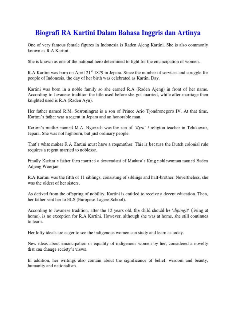 Biografi Ra Kartini Dalam Bahasa Inggris Dan Artinya Indonesian People Indonesia