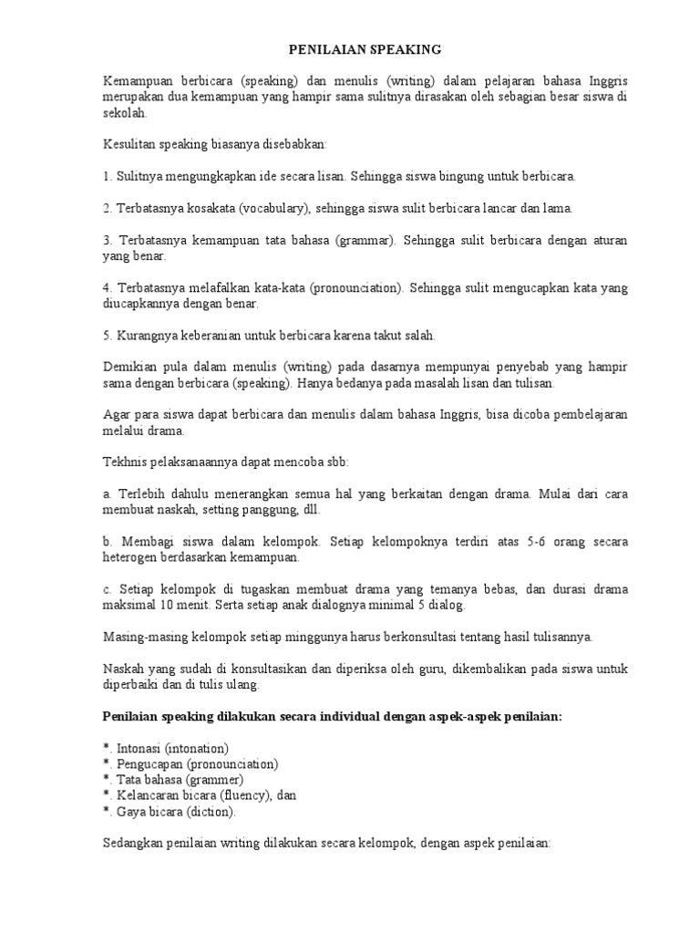 Penilaian Speaking Kemampuan Berbicara Speaking Dan Menulis Writing Dalam Pelajaran Aksen Sosiolinguistik Kosa Kata