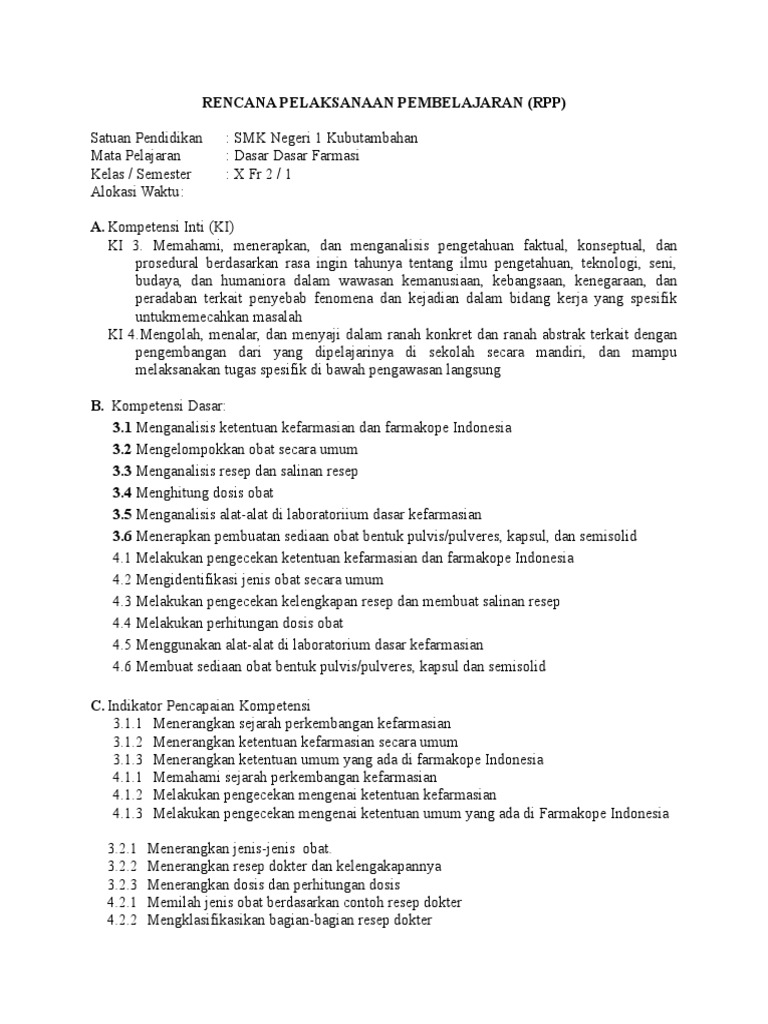 Rpp Smk Farmasi Lengkap REVISI TERBARU. Rpp Ilmu Resep 2012 2013. RPP Daring SMPMTs Full semester Masa Covid Perangkat pembelajaran wajib dimiliki oleh guru karena mengajar tanpa menggunakan.