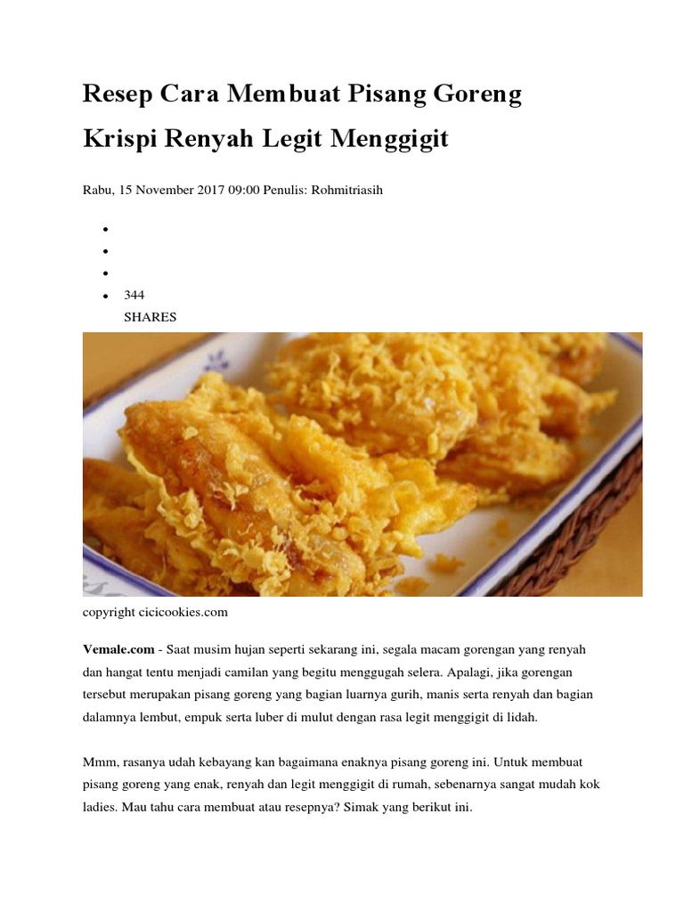 Berikut ini adalah contoh teks prosedur membuat pisang goreng. Cara membuat pisang keju Resep Pisang Goreng Oreo yang Legit dan Renyah Begini Cara Membuatnya 8 Resep cara membuat pisang goreng krispi enak antigag 6 Variasi Resep Pisang Goreng yang Nikmat dan Gampang Dibuat SHOPBACK LINE TODAY Cara Membuat Pisang Goreng Renyah di Rumah - Sipendik Resep Resep Pisang Goreng. 3 buah cabai rawit sesuai selera potong kecil-kecil ataupun menyerong.