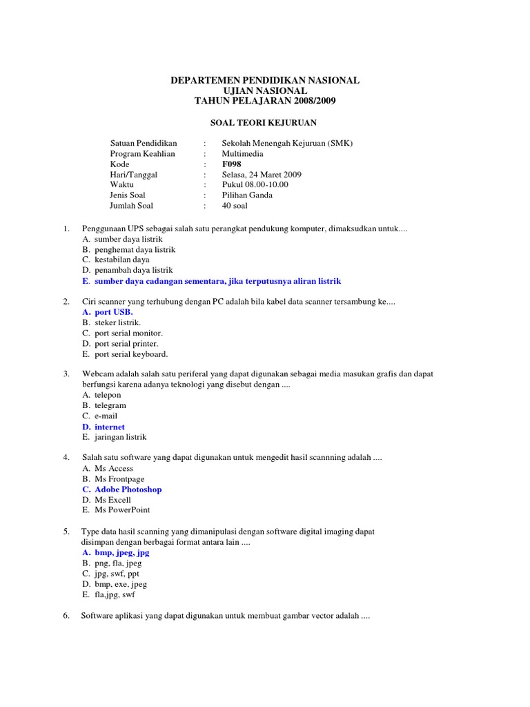Soal Dan Kunci Jawaban Uas Teori Kejuruan Multimedia Kelas Xii