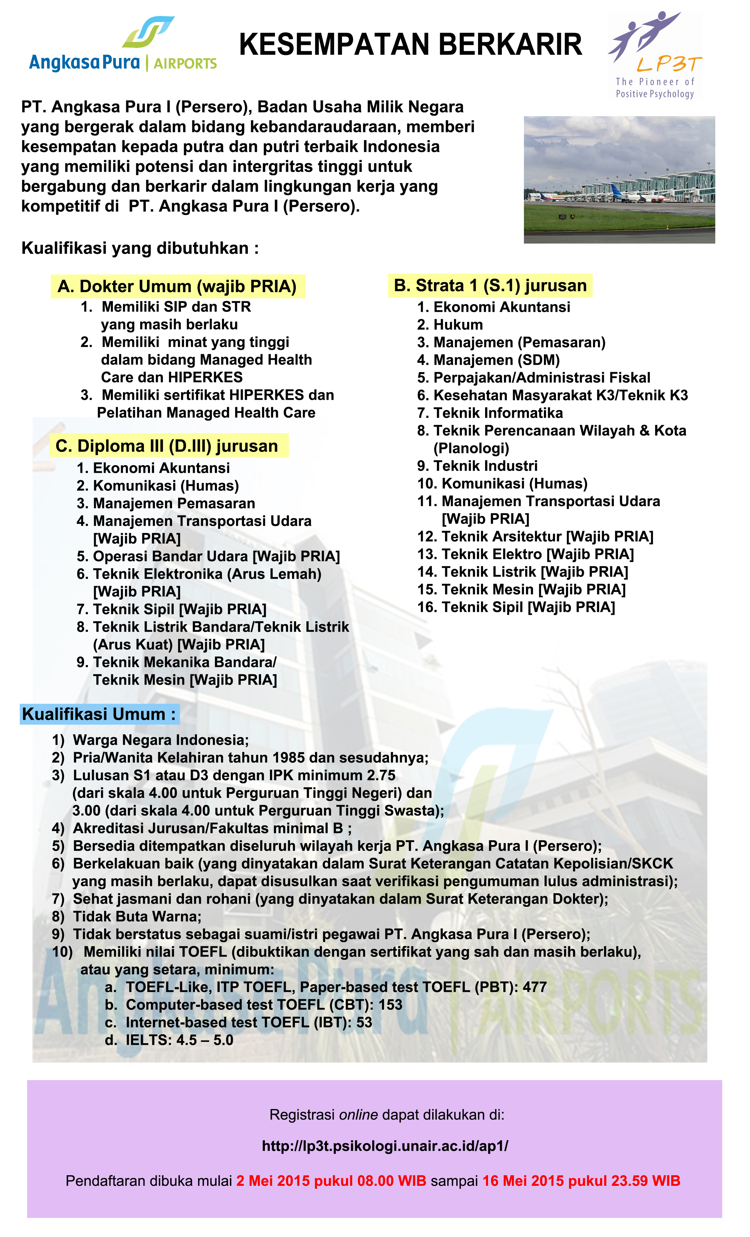 Rekrutmen Bumn Pt Angkasa Pura I Tahun 2015 D3 S1 Kaskus