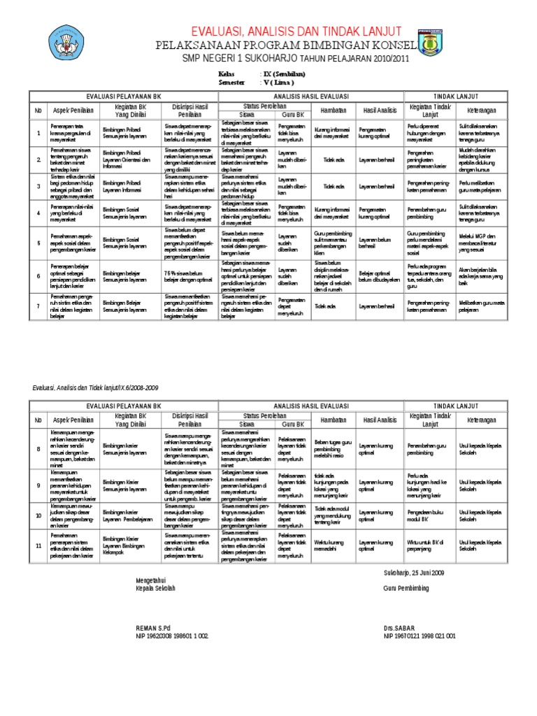 Contoh Laporan Kegiatan Advokasi Guru Bk Sd Smp Sma Smk 2017 Administrasi Guru Bk Sd Smp Cute766 Contoh Format Evaluasi Program Bk Ilmusosial Id Laporan Pelaksanaan Evaluasi Penilaian Dan Tindak Lanjut Layanan Bimbingan Konseling Dan Smp 1 Wonosobo. DARMI SPd SEMESTER.